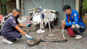 ตรวจสอบที่เกิดเหตุ พบงูเหลือม ขนาดใหญ่ ยาวกว่า 3 เมตร