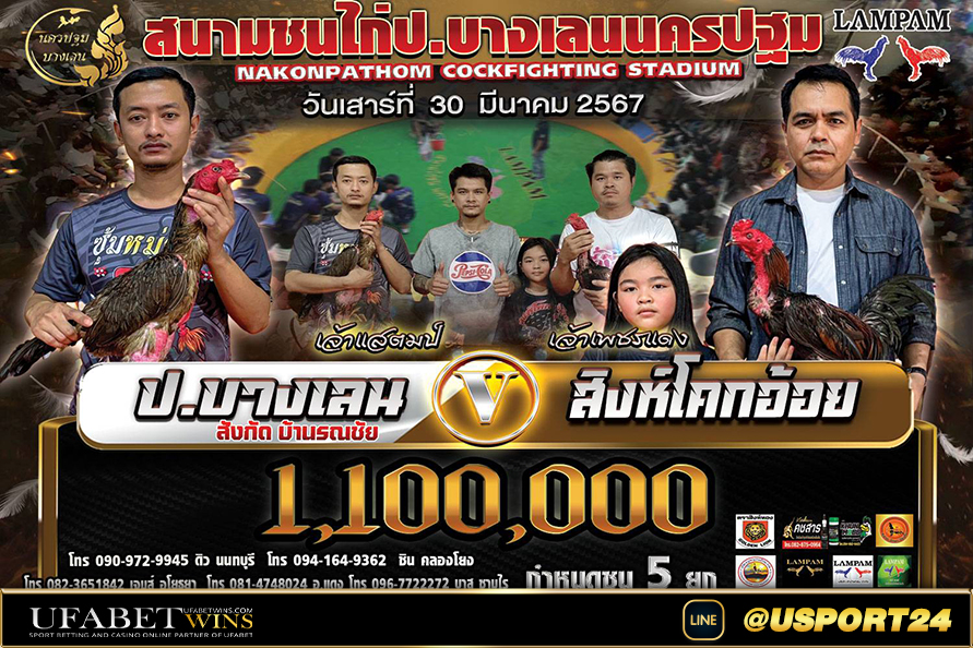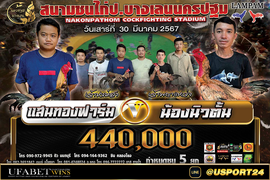 สนามชนไก่บางเลนนครปฐมคู่เอก เด็กเพชรVSส.พันสิง
