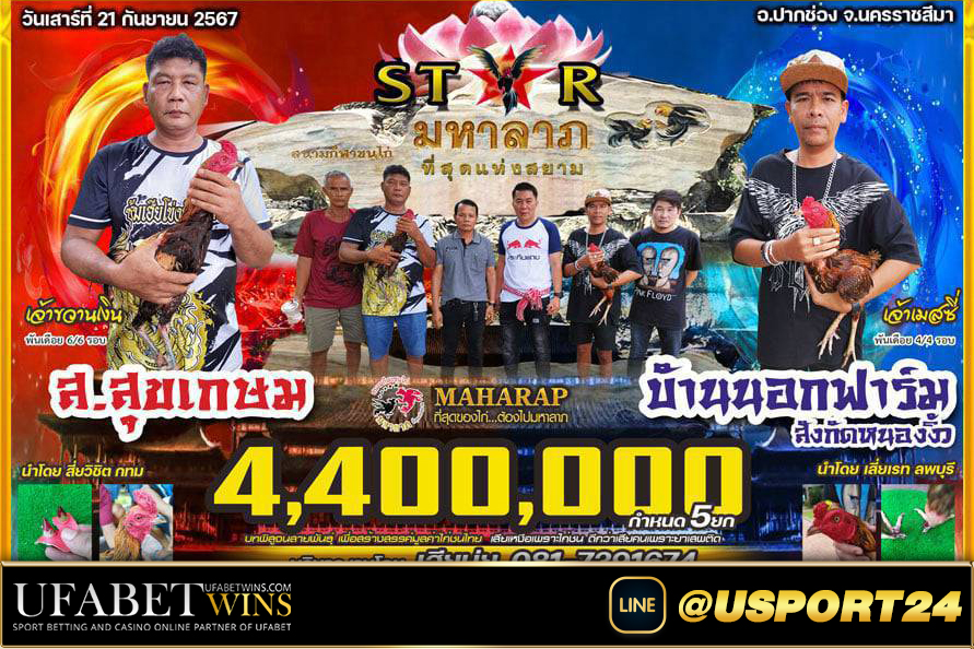สนามชนไก่มหาลาภเสาร์ที่21กันยายน2567