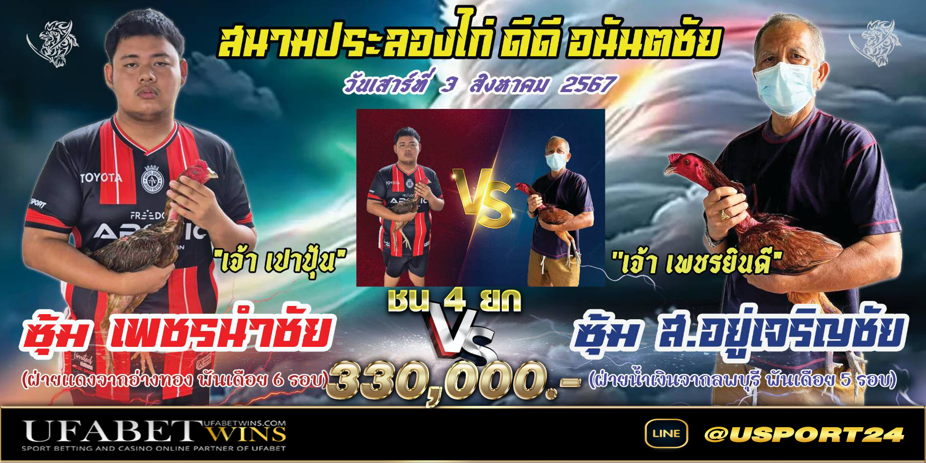 สนามไก่ทองอินเตอร์ คู่่ไก่ชนที่พร้อมชน คู่เอกระหว่าง แอมเฟย์ฟาร์มVS9ก+อ.จันทรา ชิงรางวัลเงินเดิมพัน3,300,000บาท คู่เอก2 ศักดิ์ดาฟาร์มVSช.โชคเจริญ98ฟาร์ม ชิงรางวัลเงินเดิมพัน2,200,000บาท