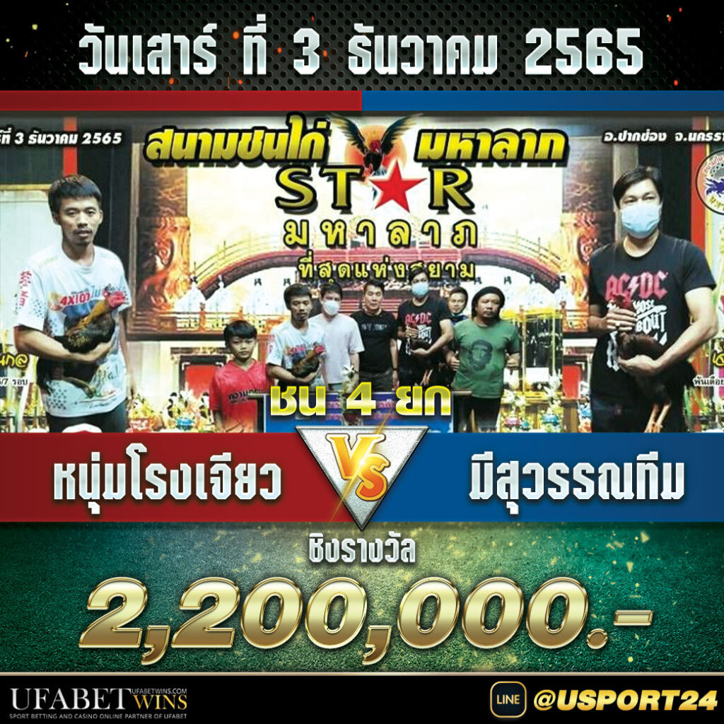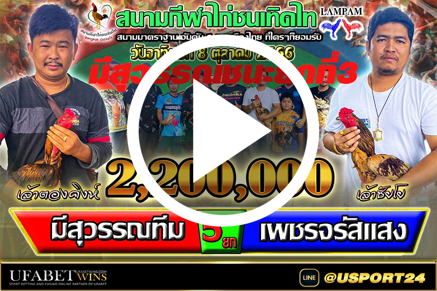 มีสุวรรณทีม(เจ้าตองคิงห์)VS(เจ้าชัยโย)เพชรจรัสแสง สนามชนไก่เทิดไท