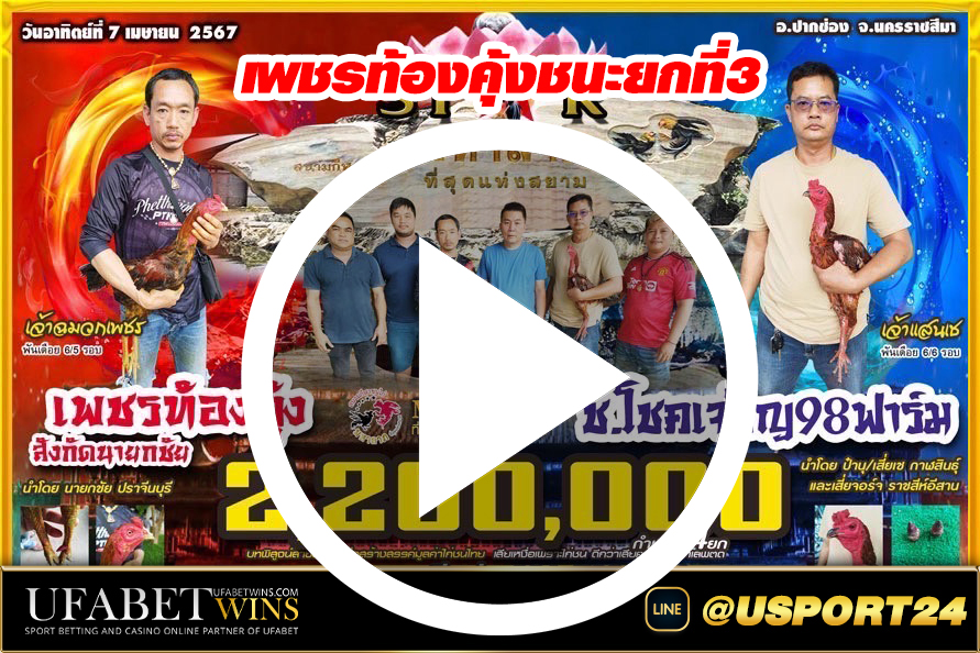 ตระกูลทรัพย์VSเพชรนำโชค สนามไก่ทองอินเตอร์ล่าสุด